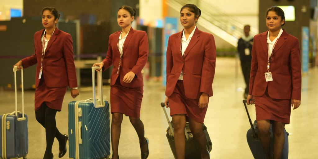 At BrandCrew Aviation Academy In Bangalore, we offer industry-relevant aviation courses designed to prepare students for airline and airport careers. Our programs include Cabin Crew Training, Ground Staff Handling, Airport Management, and Aviation Hospitality—each focused on practical skills, expert guidance, and strong placement support with leading aviation organizations.